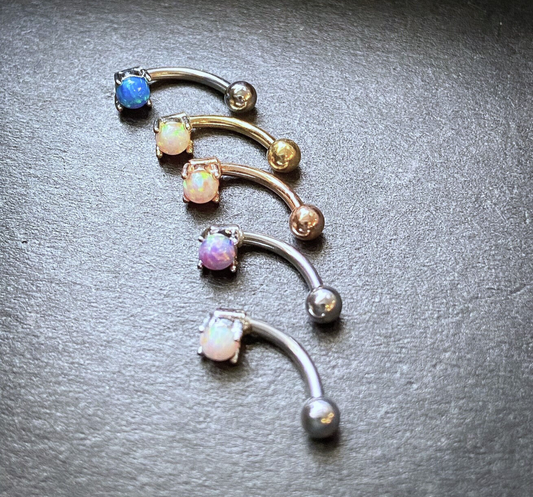 5pc Bulk Pack Prong Set Opal Surgical Steel Eyebrow Rings 16g Body Jewelry
