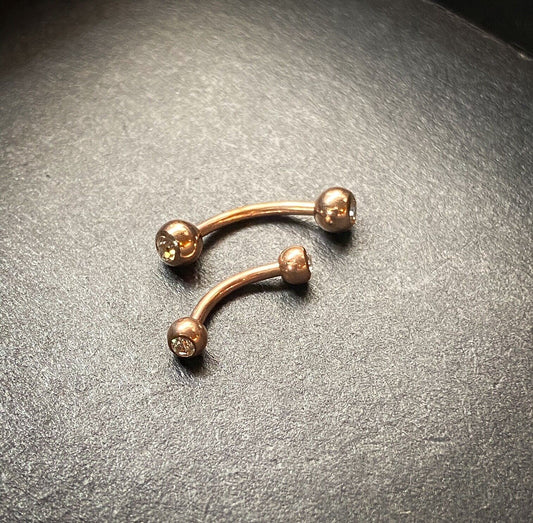 1pc Rose Gold Plated Gem Ball Style 16g Curved Barbell 16 Gauge Eyebrow Ring
