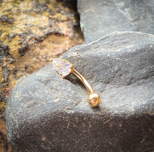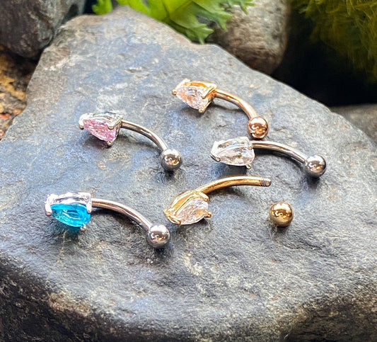1pc Prong Set 3mm CZ Gem Teardrop 16g Curved Barbell 16 Gauge Eyebrow Ring