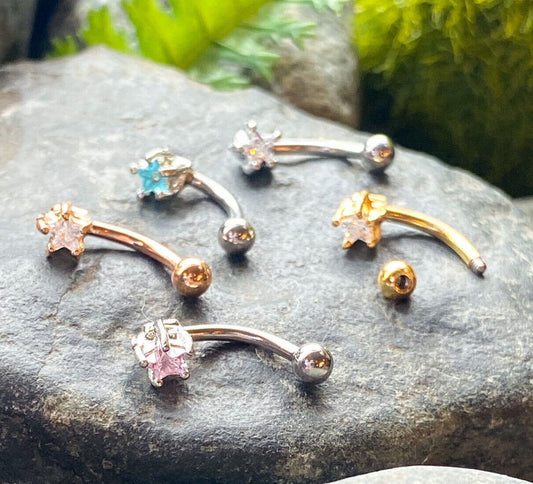 1pc Prong Set 3mm CZ Gem Star 16g Curved Barbell 16 Gauge Eyebrow Ring