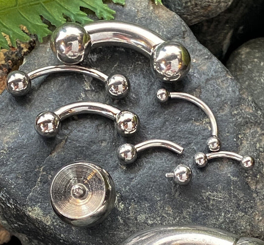 1 Piece Grade 23 Solid Titanium Internally Threaded Curved Barbell / Eyebrow Ring - 16g or 14g