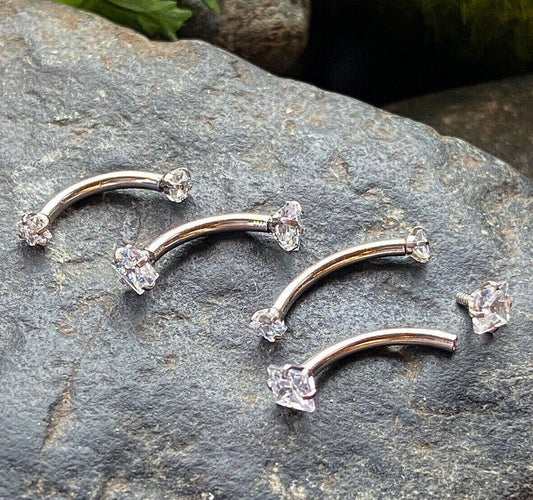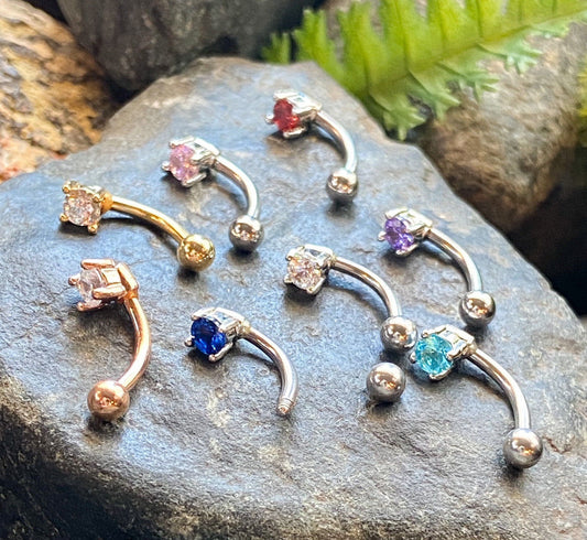1pc Prong Set 3mm CZ Gem 16g Curved Barbell 16 Gauge Eyebrow Ring