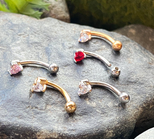 1pc Prong Set 3mm CZ Gem Heart 16g Curved Barbell 16 Gauge Eyebrow Ring