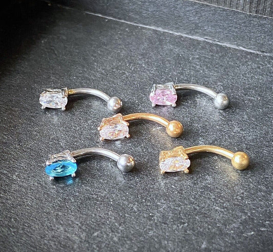 1pc Prong Set 3mm CZ Gem Oval 16g Curved Barbell 16 Gauge Eyebrow Ring