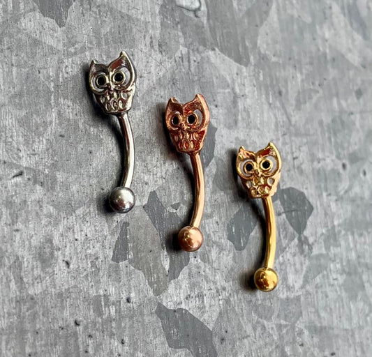 1 Owl Surgical Steel Eyebrow Ring with Curved Barbell - 16g (1.2mm), length 5/16" (8mm), Ball 3mm - Silver, Gold or Rose Gold