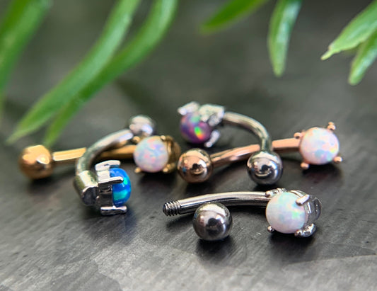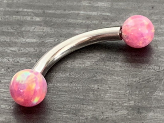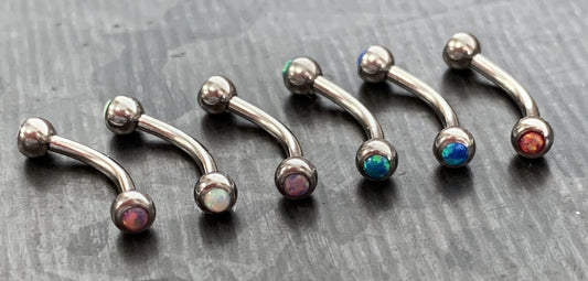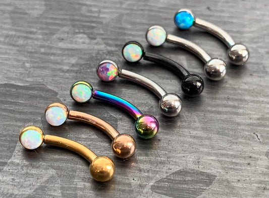 1 Piece Opal Balls Curved Surgical Steel Eyebrow Ring - 16g, 5/16" (8mm) - Blue, Pink or White - YOU Choose Color!!!