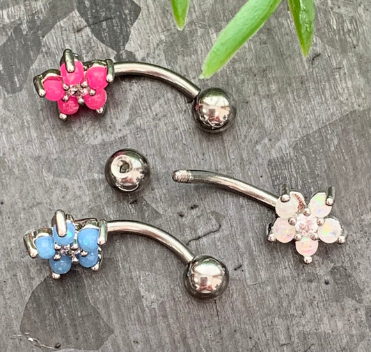 1 Piece Brilliant Opal Glitter Flower Curved Barbell Eyebrow Ring - 16g - Length 8mm