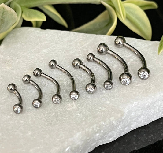 1 Piece Gemmed Internally Threaded G23 Solid Titanium Curved Barbell Eyebrow Ring - 16g or 14g - 6mm, 8mm, 10mm, 11mm or 12mm!