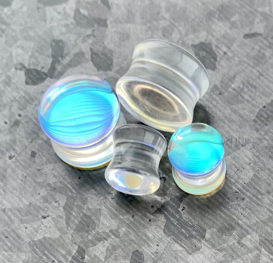 PAIR of Beautiful Iridescent Glass Double Flare Plugs - Gauges 2g (6mm) through 1 1/4" (32mm)