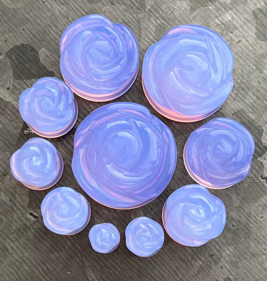 PAIR of Beautiful Lavender Opalite Stone Carved Flower Double Flare Glass Plugs - Gauges 2g (6.5mm) to 1" (25mm)