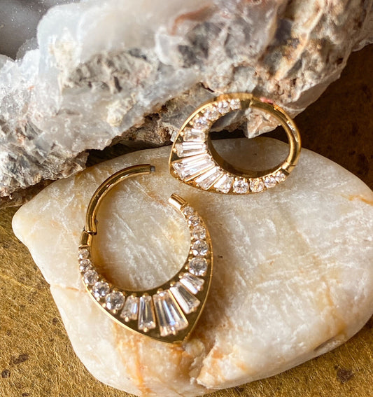 1pc Gold Grand Tiara CZ Gems Hinged Segment Ring Steel Septum Hoop Helix Daith