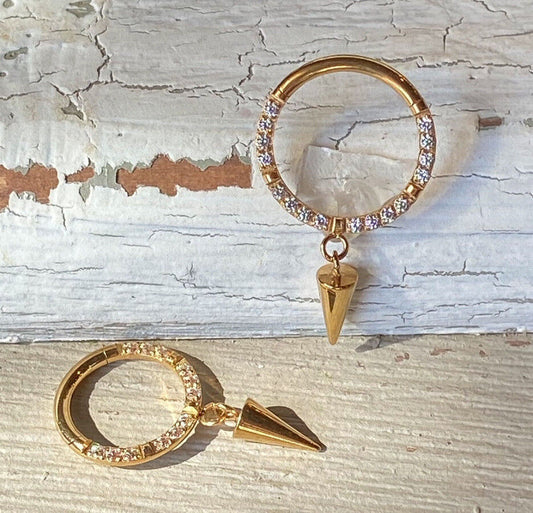 1pc Spike Dangle CNC Set Gems Hinged Segment Ring Hoop Helix Septum Titanium