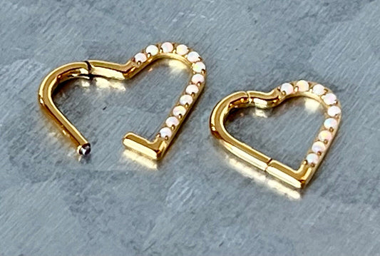 1pc Solid Titanium Half Opals Heart Hinged Segment Ring Helix Septum Clicker