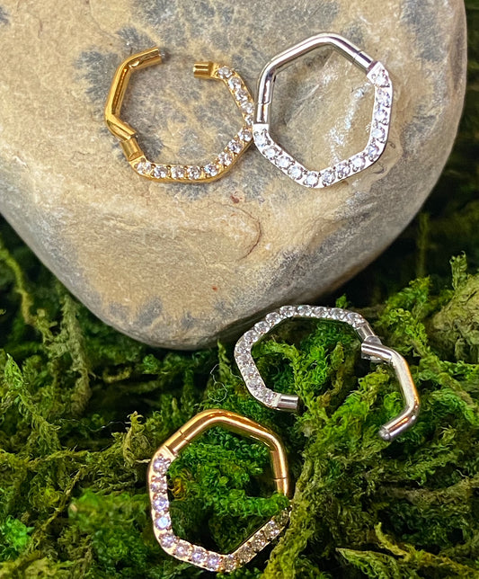 1pc CZ Gem Hexagon Hinged Segment Ring 16g Septum Clicker Helix Orbital Daith