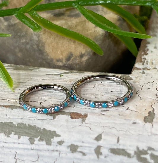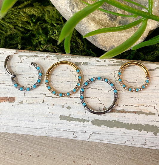 1pc Titanium Hinged Segment Ring Front Turquoise & Gems Septum Hoop Helix Daith