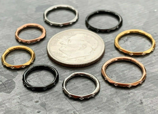 1 Piece Implant Grade Titanium Faceted CZ Gem Hinged Segment Septum Ring - 16g in 10mm or 8mm
