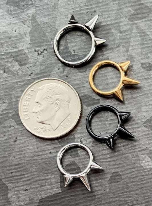 1 Piece Implant Grade Titanium Three Spikes Hinged Segment Septum Ring in 10mm or 8mm