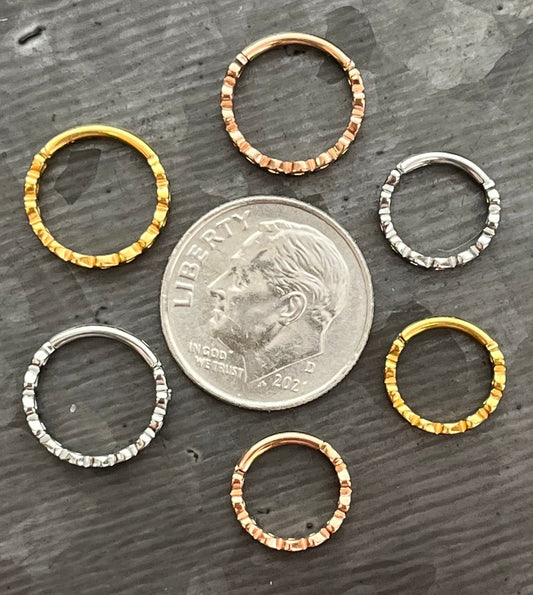 1 Piece Side Facing Hearts Surgical Steel Hinged Segment Ring - 16g - 8mm or 10mm Internal Diameter
