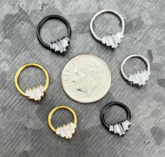1 Piece of Unique Five Baguette Gems Fan Hinged Segment Septum Ring