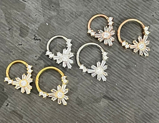 1 Piece of Unique Baguette Gems Flower Hinged Segment Septum Ring - 10mm & 8mm