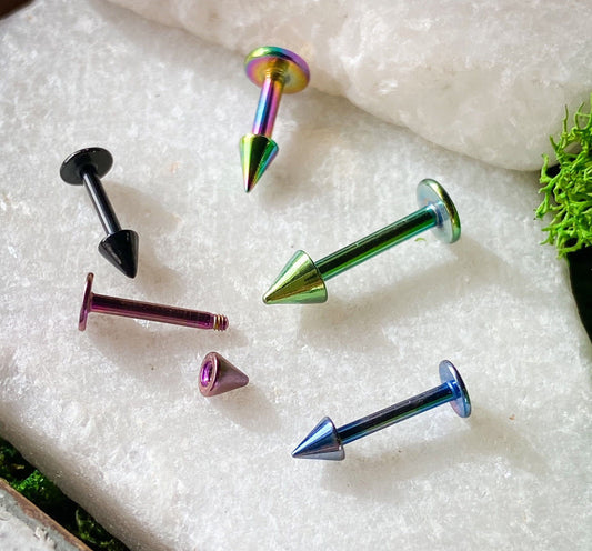 1pc Titanium Ion Plated 316L Surgical Steel Spiked Labret, Monroe Stud Lip Ring