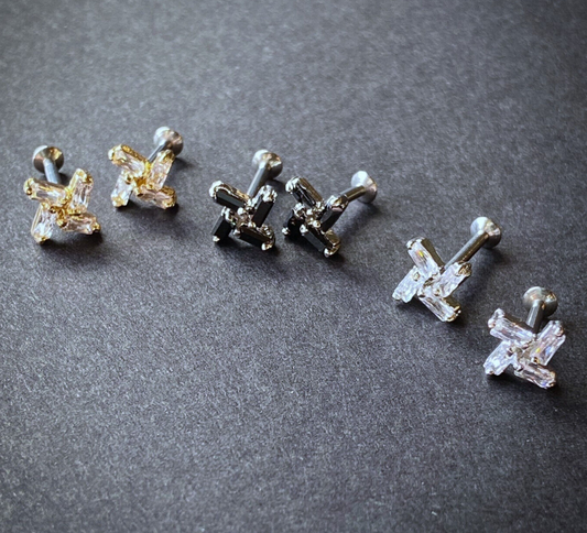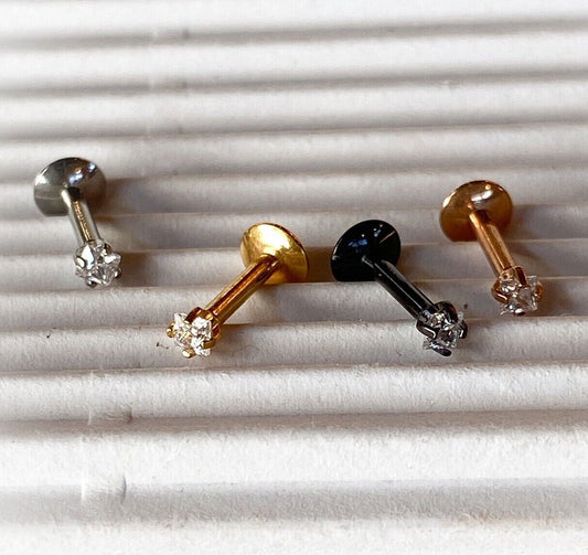 1pc CZ Paved Star 16g Labret Monroe Internally Threaded Steel Helix Tragus