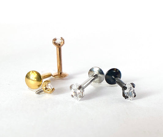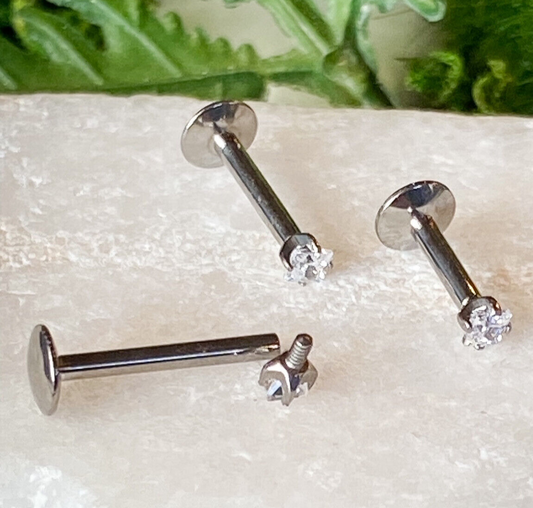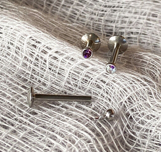 1pc Internally Threaded Tiny 2mm CZ Gem Titanium Labret, Monroe Stud Lip Ring