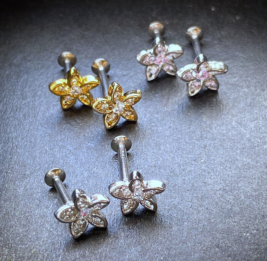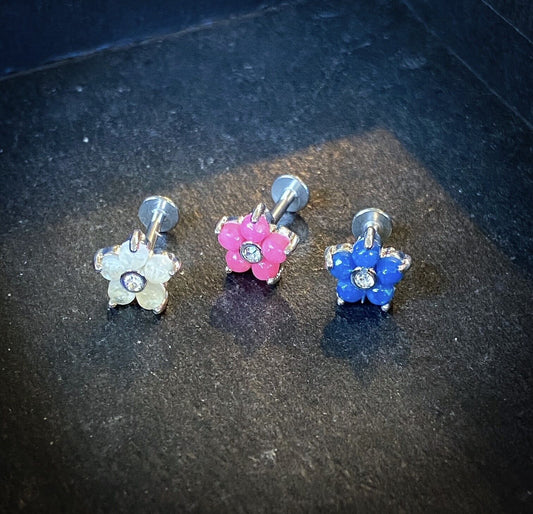 1pc CZ Gem Set Flower 16g Internally Threaded Steel Labret Stud Cartilage Ring