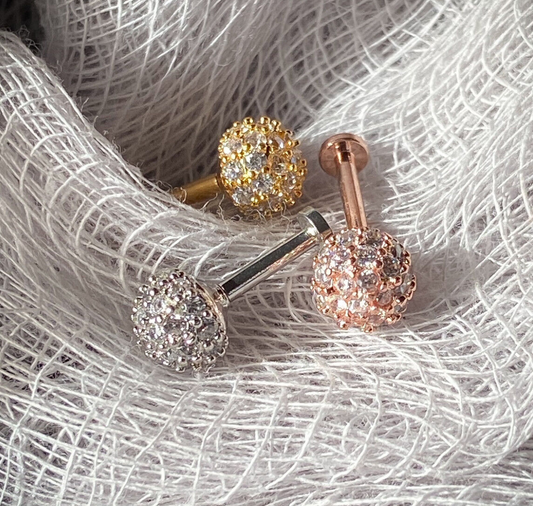 1pc CZ Paved 6mm Ball 16g Labret Monroe Internally Threaded Steel Helix Tragus
