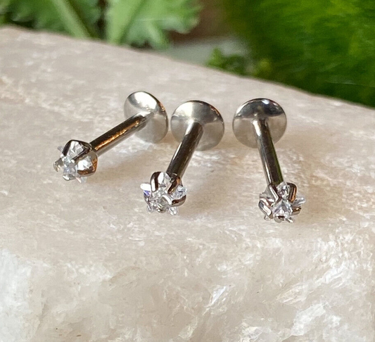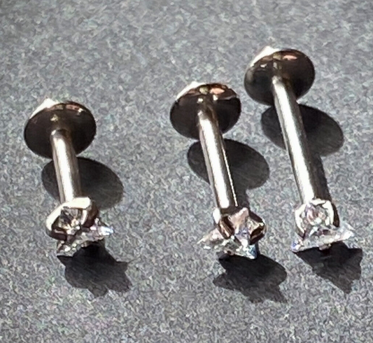 1pc Triangle CZ Gem 16g Internally Threaded 1/4" or 5/16" Steel Labret Monroe