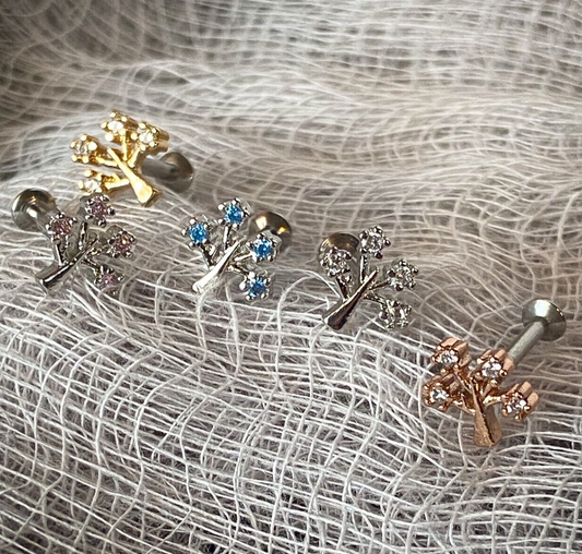 1pc Tree of Life CZ Gem 16g Internally Threaded Steel Labret Stud Cartilage Ring