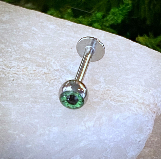 1pc Green Eyeball Inlaid Ball Labret Stud Eye Ball Cartilage Ring Monroe 16g 8mm