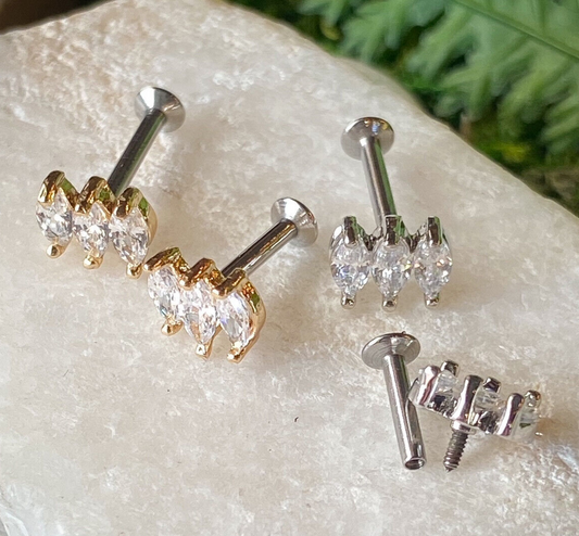 1pc Triple Marquise CZ Gem 16g Internally Threaded Labret Stud Cartilage Ring
