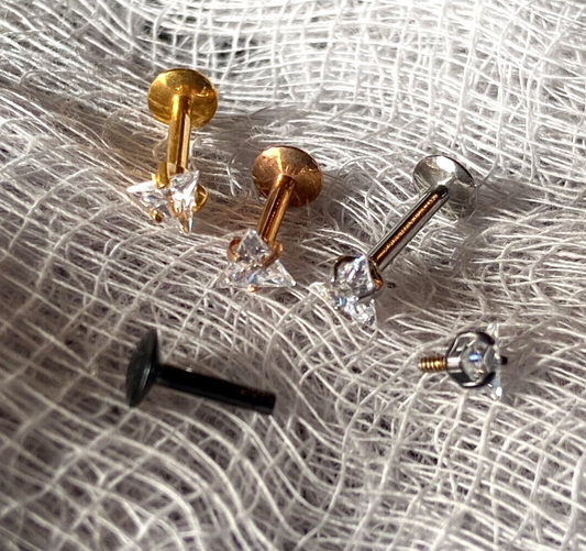 1pc Internally Threaded Solid Titanium Triangle Gem 16g Labret Monroe Stud Ring