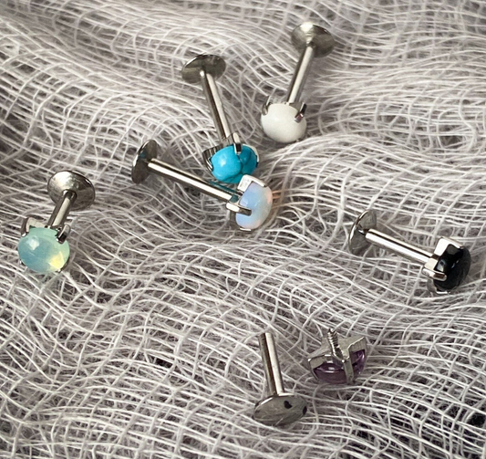 1pc Semi-Precious Stone Set 16g Internally Threaded Labret Stud Cartilage Ring