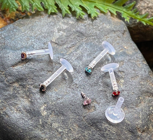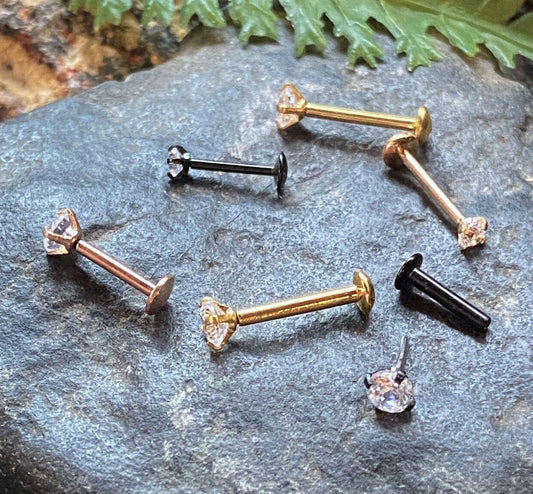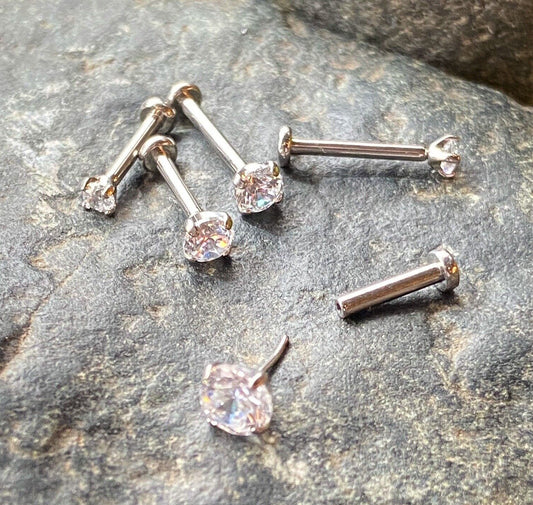 1pc Push-in Prong Set CZ Gem 16g Bioflex Stud Labret Monroe Tragus Piercing