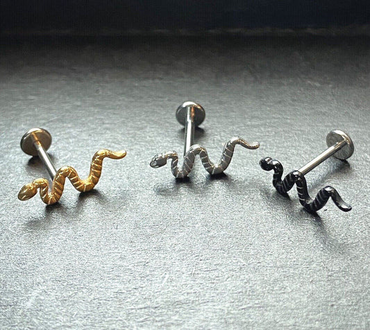1 Piece Unique CZ Paved Steel Snake 16g Internally Threaded Labret!