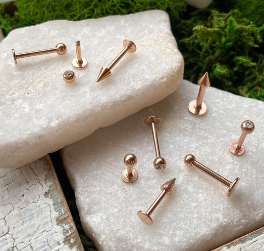 1pc Rose Gold Ball, Spike or Gem Style Labret, Monroe Stud Lip Ring
