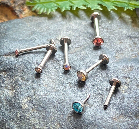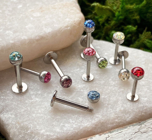 Internally Threaded Labret w/Ferido Crystal 3mm Gem Ball - CHOOSE YOUR COLOR