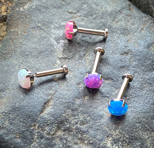 1pc Opal Set Surgical Steel Internally Threaded Labret Monroe - choose color