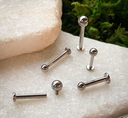 1pc Internally Threaded Grade 23 Solid Titanium Labret, Monroe Stud Lip Ring