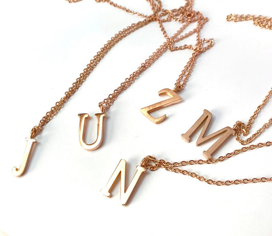 Rose Gold IP Steel Initial / Alphabet Pendant Necklace - Choose From A to Z !