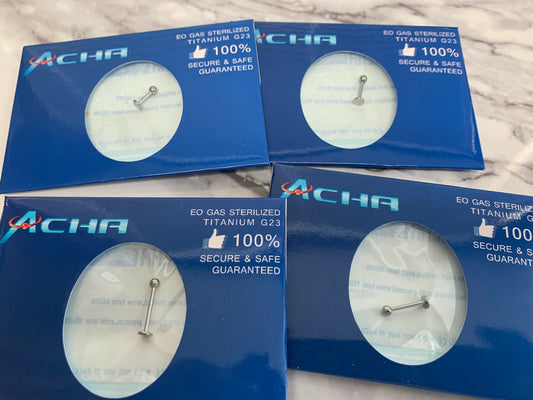 1pc Pre-Sterile Straight Barbell Tongue, Tragus, Nipple Ring Solid G23 Titanium