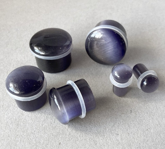 PAIR Violet Cat Eye Stone Plugs Single Flare Tunnels Earlets Gauges Body Jewelry