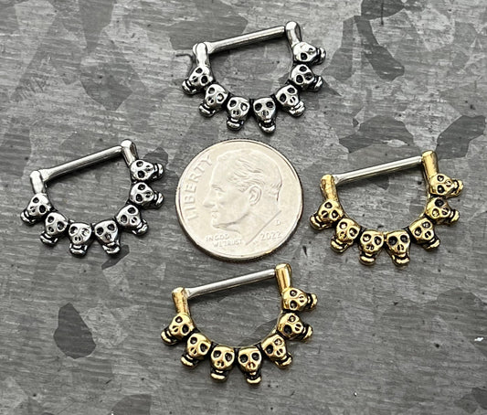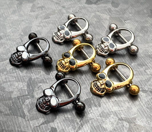 PAIR of Steel Skull with Enamel Eyes Nipple Barbells/Shields/Rings
