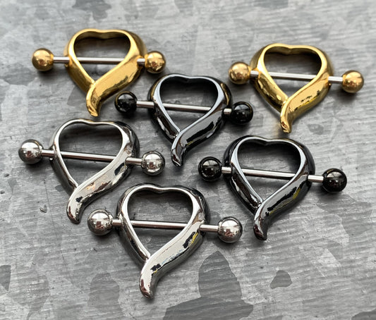 PAIR of Unique Artistic Heart Shaped Nipple Steel Barbells / Shields / Rings