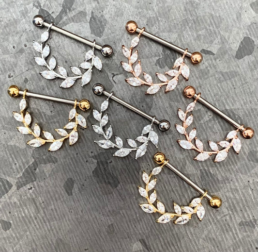 PAIR of Stunning Marquise CZ Gem Vine Dangle Steel Nipple Barbells / Shields / Rings