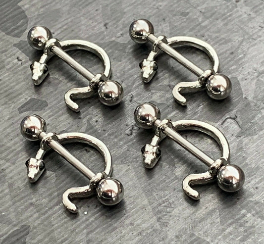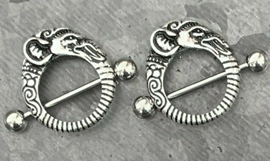 PAIR of Snake Design Steel Nipple Barbells/Shields/Rings