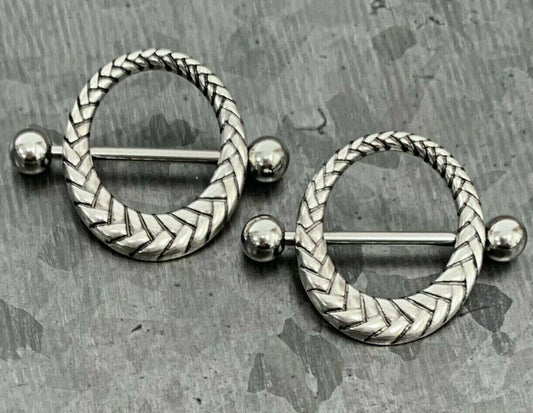 PAIR of Unique Dragon Scales / Snake Skin Design Steel Nipple Barbells / Shields / Rings