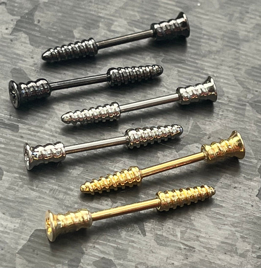 PAIR of Screw Shaped Steel Nipple Barbell/Rings